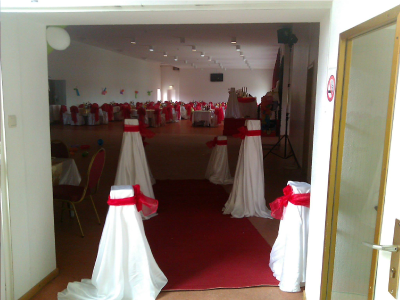 In diesem Bild sehen Sie wie die Tische und Stühle in Rot gestaltet wurden. Sie können aber auch zwischen Blau, Gold, Silber, Pink und Türkis wählen.
